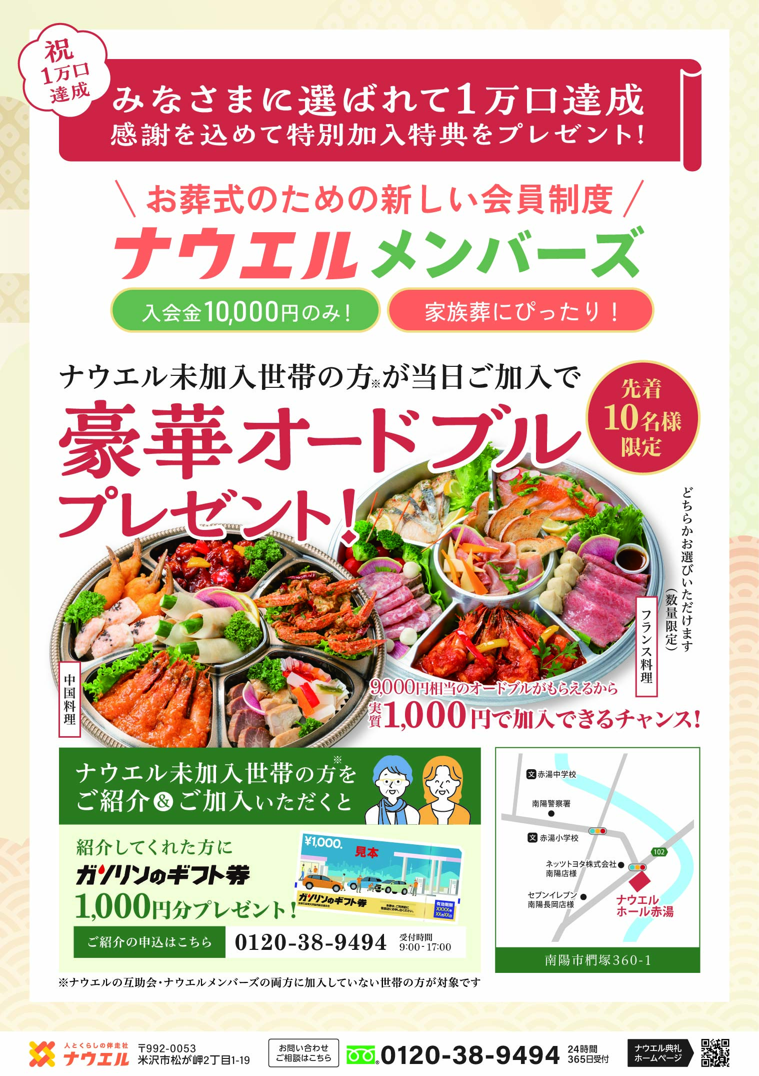 ナウエルメンバーズに当日ご加入いただいた世帯には、「豪華オードブル(9,000円相当)」をプレゼントいたします。